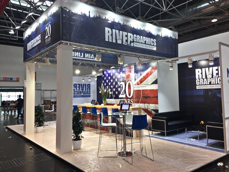 Our Client (River Graphics), leading world supplier of printing machinery, commissioned us to design a jointly owned exhibition stand