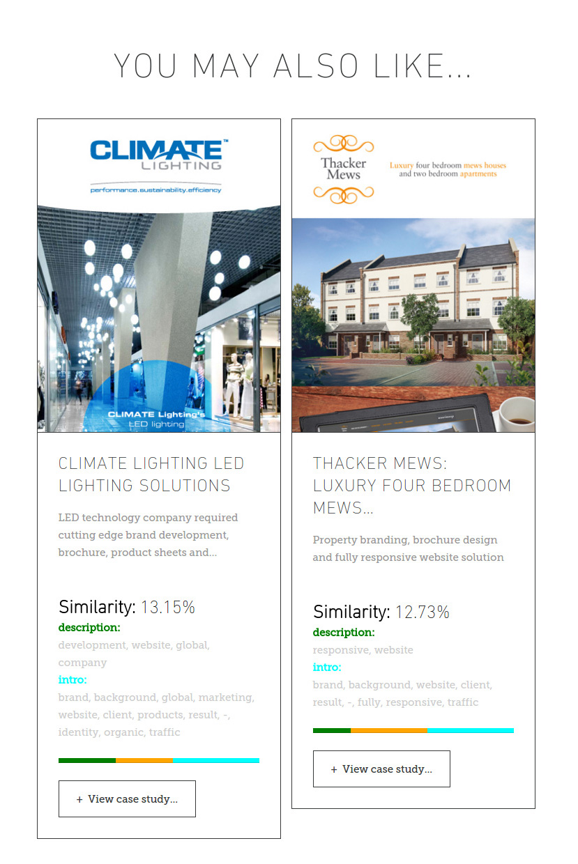 just reading, this led to the idea of a smart related work and case studies area that would be implemented at the bottom of
