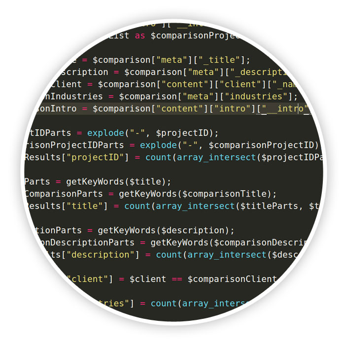 For instance we wouldn't want two projects matching because they both contained the word "and" or "because".